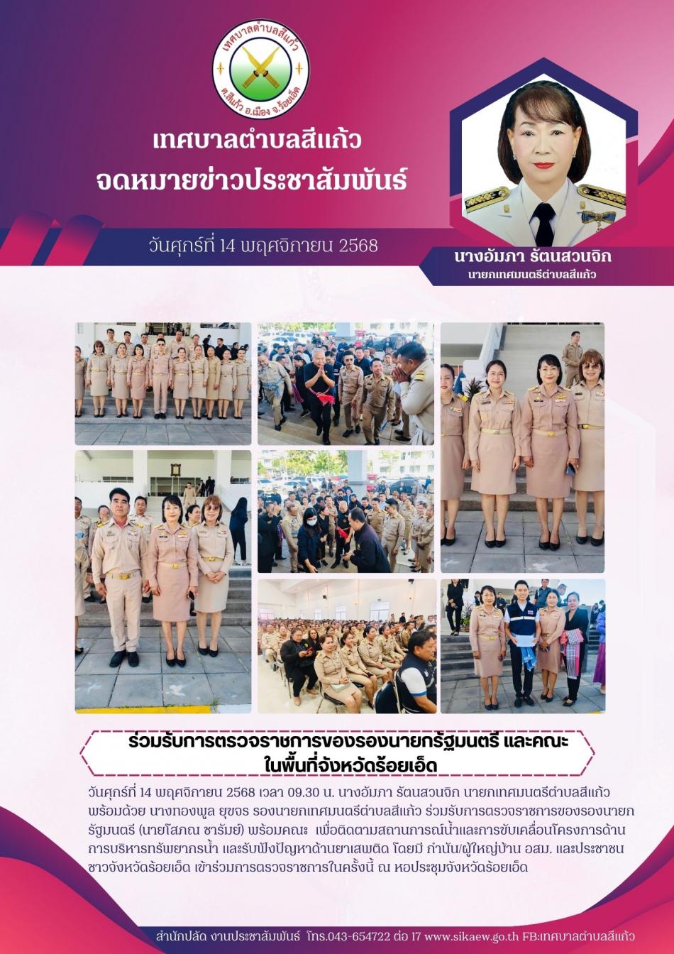 ร่วมรับการตรวจราชการของรองนายกรัฐมนตรี และคณะ ในพื้นที่จังหวัดร้อยเอ็ด