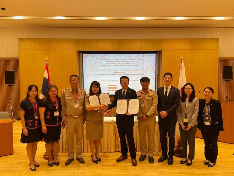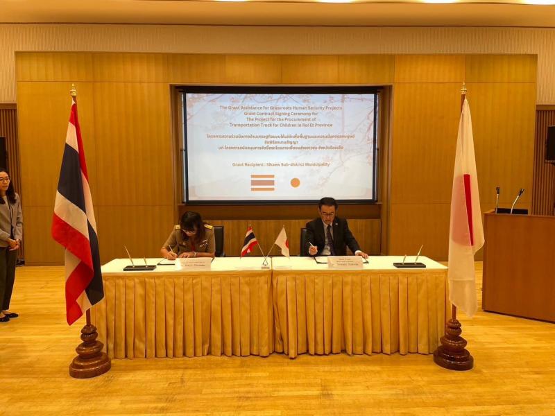 รายละเอียด : ในวันที่ 22 กุมภาพันธ์ 2567 นางเกื้อจิตต์ จุรีมาศ นายกเทศมนตรีตำบลสีแก้ว เดินทางไปราชการ ณ สถานทูตญี่ปุ่น ประจำประเทศไทย เพื่อลงนามเซ็นสัญญารับมอบเงินทุนของโครงการร่วมมือทางเศรษฐกิจแบบให้เปล่าเพื่อพื้นฐานและความมั่นคงของมนุษย์ (จีจีพี) โดยมีแนวนโยบายให้ความช่วยเหลือแก่ประเทศไทย ซึ่งเทศบาลตำบลสีแก้วได้รับคัดเลือกสำหรับโครงการดังกล่าว เพื่อที่จะรับอุดหนุนรถรับส่งนักเรียนในเขตตำบลสีแก้ว มูลค่าหนึ่งล้านห้าแสนบาท ค่ะ