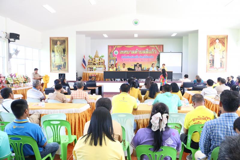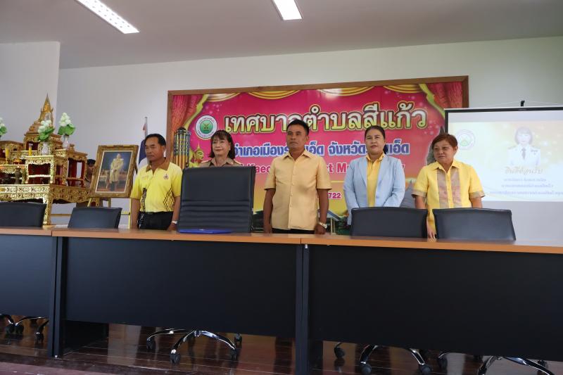 ปลัดฯ รองปลัดฯ หัวหน้าส่วนราชการ ข้าราชการ พนักงานจ้างตามภารกิจและพนักงานจ้างทั่วไปของเทศบาลตำบลสีแก้ว ร่วมต้อนรับท่านนายกเทศมนตรีตำบลสีแก้ว ณ หอประชุมเทศบาลตำบลสีแก้ว