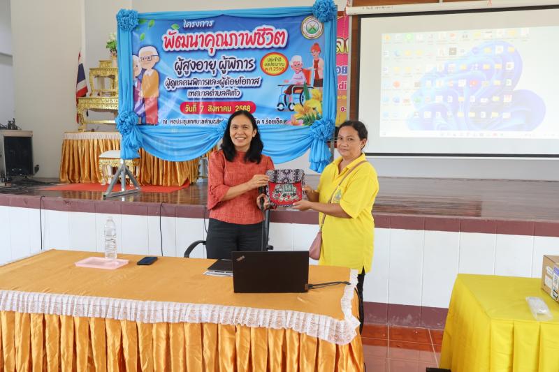 description วันพฤหัสบดี ที่ 7 สิงหาคม 2568 เวลา 09.00 น. นางอัมภา รัตนสวนจิก นายกเทศมนตรีตำบลสีแก้ว เป็นประธานกล่าวเปิดโครงการพัฒนาคุณภาพชีวิตผู้สูงอายุ ผู้พิการ ผู้ดูแลคนพิการและผู้ด้อยโอกาส ในตำบลสีแก้ว อำเภอเมืองร้อยเอ็ด จังหวัดร้อยเอ็ด โดยมี คณะผู้บริหาร สมาชิกสภาฯ หัวหน้าส่วนราชการ งานพัฒนาสังคมและความมั่นคงของมนุษย์ และเจ้าหน้าที่ที่เกี่ยวข้องของเทศบาลตำบลสีแก้ว เข้าร่วมรับฟังการบรรยายโครงการดังกล่าวด้วย person admin
