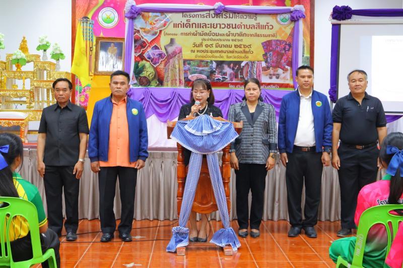 description วันพฤหัสบดีที่ 19 มีนาคม 2569 เวลา 09.00 น. นางอัมภา รัตนสวนจิก นายกเทศมนตรีตำบลสีแก้ว เป็นประธานกล่าวเปิดโครงการส่งเสริมให้ความรู้แก่เด็กและเยาวชนตำบลสีแก้ว (กิจกรรม : การทำผ้ามัดย้อมและผ้าบาติกจากสีธรรมชาติ) เพื่อสร้างโอกาสให้เด็กและเยาชนในวัยเรียนได้รับการฝึกทักษะอาชีพการทำผ้ามัดย้อมและผ้าบาติกตามศักยภาพ ที่มีอยู่โดยเน้นการปฏิบัติจริงเพื่อให้ผู้เรียนเกิดความรู้ ความเข้าใจและสามารถนำไปประกอบอาชีพได้ เพื่อให้เด็กและเยาวชนมีความรู้เกี่ยวกับอาชีพเสริมซึ่งเป็นอีกทางเลือกหนึ่งในการประกอบอาชีพระหว่างเรียน หรือหลังปิดภาคเรียนและยังเป็นการใช้เวลาว่างให้เกิดประโยชน์ และเพื่อส่งเสริมการพัฒนาคุณภาพชีวิตให้เด็กและเยาวชนได้รับการพัฒนาอาชีพอย่างมีคุณภาพ กลุ่มเป้าหมาย คือนักเรียนระดับมัธยมศึกษาในเขตเทศบาลตำบลสีแก้ว จำนวนทั้งหมด 50 คน โดยมี คณะผู้บริหาร สมาชิกสภาเทศบาล ปลัดเทศบาล หัวหน้าส่วนราชการ เทศบาลตำบลสีแก้ว คณะครู นักเรียน ในเขตเทศบาลตำบลสีแก้ว เข้าร่วมพิธีเปิดโครงการในวันนี้ person admin