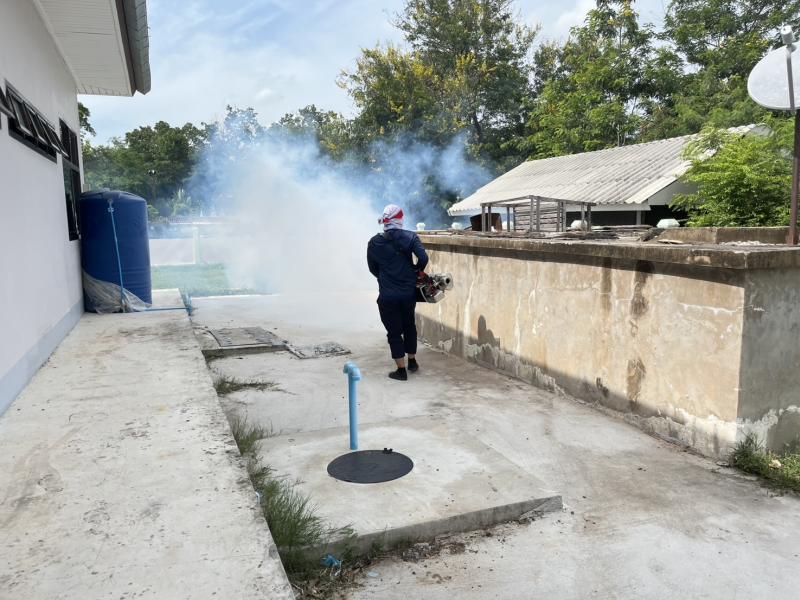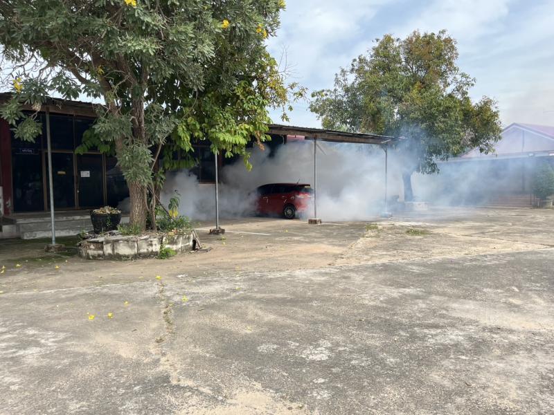 ลงพื้นที่ฉีดพ่นหมอกควันกำจัดยุงตัวเต็มวัยและแจกแผ่นพับประชาสัมพันธ์ โครงการส่งเสริมสนับสนุนรณรงค์ควบคุมป้องกันโรคไม่ติดต่อ/โรคติดต่อฯ
