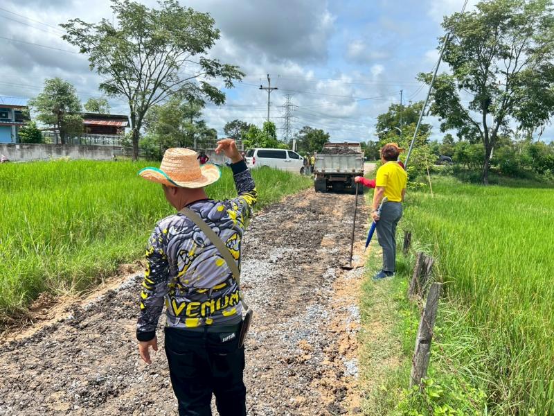 ลงพื้นที่ตรวจสอบ การลงหินเพื่อซ่อมแซมถนนที่ชำรุดบริเวณก่อนเข้าหมู่บ้านสีแก้ว หมู่ที่ 1 คุ้มบ้านน้อยโนนสะอาด