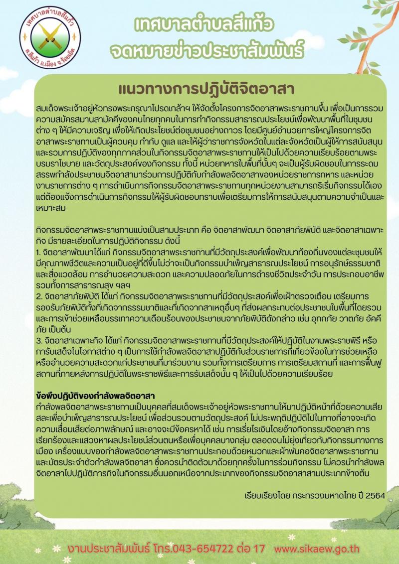 #เทศบาลตำบลสีแก้ว ขอประชาสัมพันธ์ ????แนวทางการปฏิบัติงานจิตอาสาพระราชทาน